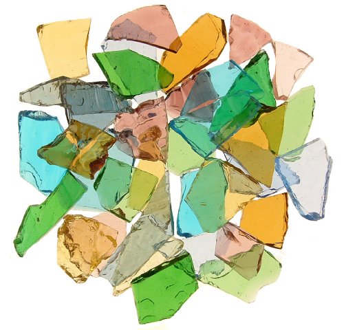- The glass pieces range in size from 1/2-inch to 1-inch.