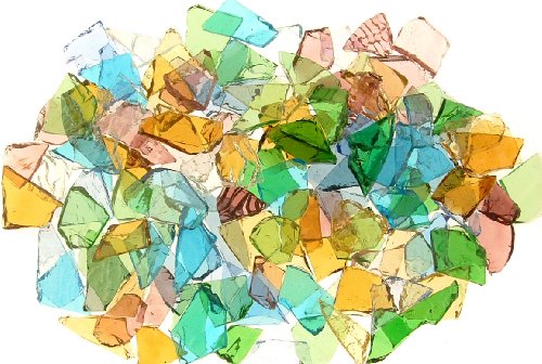 - The glass pieces range in size from 1/2-inch to 1-inch.