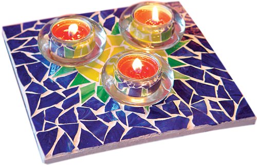 Enjoy the rich look of stained glass mosaics with Jennifer's Mosaics Glass Mosaics Trivet Kit! This kit has everything you need to make a stunning mosaic trivet using only high-end stained glass materials - no extra tools needed. Pre-cut stained glass will quickly make this kit a great family pastime or a super item to pack and take on vacation! This kit contains an 8" x 8" trivet, pre-cut stained glass, adhesive, grout, spreader glove, 4 rubber feet, grout sponge, and instructions.Check its out related products of Stained Glass Mosaics Trivet Kit